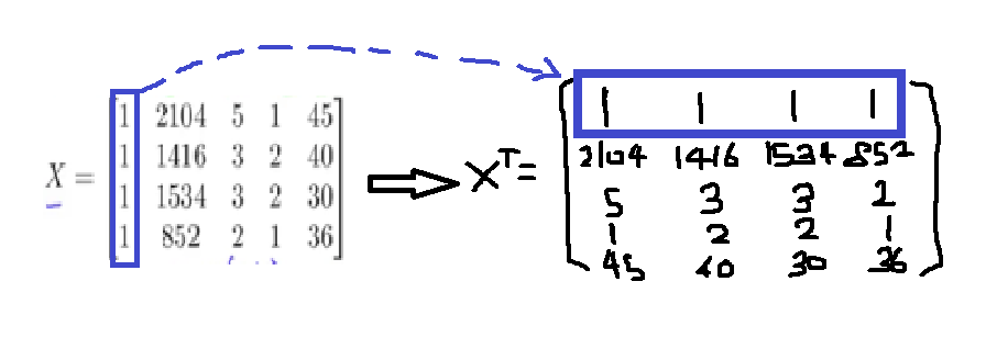 위는 4개의 feature를 가지는 데이터이며 x0는 따로 추가해준 행렬로 그냥 상수라고 생각하시면 됩니다.
