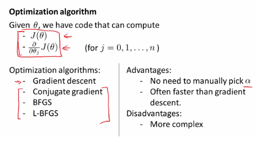 이 최적화 알고리즘들은 Linear Regression에서의 Normal Equation처럼 반복적인 갱신을 거치지 않고 한번에 찾아내어 훨씬 빠르지만, 그만큼 복잡하다는 단점이 있습니다.