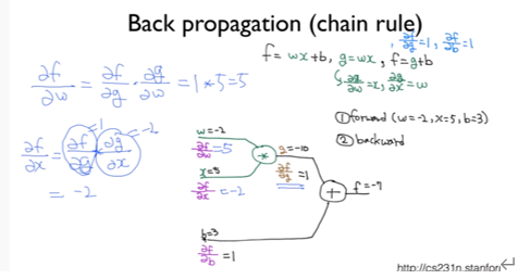 다시 말하지만 Back Propagation은 Cost를 최소화하기 위해 w를 갱신해야하며 이를 위해선 Cost의 미분값이 필요합니다. 이것이 위 이미지 좌측 상단의 '∂f / ∂w' 이고 이것을 구하는데 이용되는 것이 연쇄법칙인 것입니다.