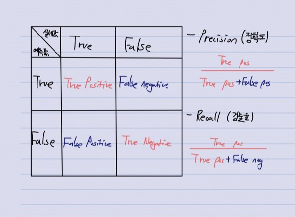 이렇게 설명드려도 종종 Precision과 Recall의 개념을 헷갈리는 경우가 있습니다. 이는 대부분의 사람들이 detect라는 개념을 전체 데이터에서 신용 사기를 검출한 경우로만 한정지어 생각하기 때문입니다. 즉 detection에는 실제값이 신용 사기인데 예측값이 신용 사기인 경우와 함께 실제값은 정상이지만 예측값이 신용 사기인 경우도 포함된다는 것입니다.