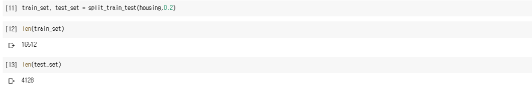 그런데 위와 같은 방식으로 했을 때의 문제점은 함수를 실행할 때마다 다른 test set을 생성한다는 것입니다. 즉 모델이 전체 데이터셋을 보게 되는 것이죠. 이를 피하기 위해 np.random.permutation(np.random.seed(42))와 같이 랜덤값 생성 시 초깃값을 지정할 수 있습니다.