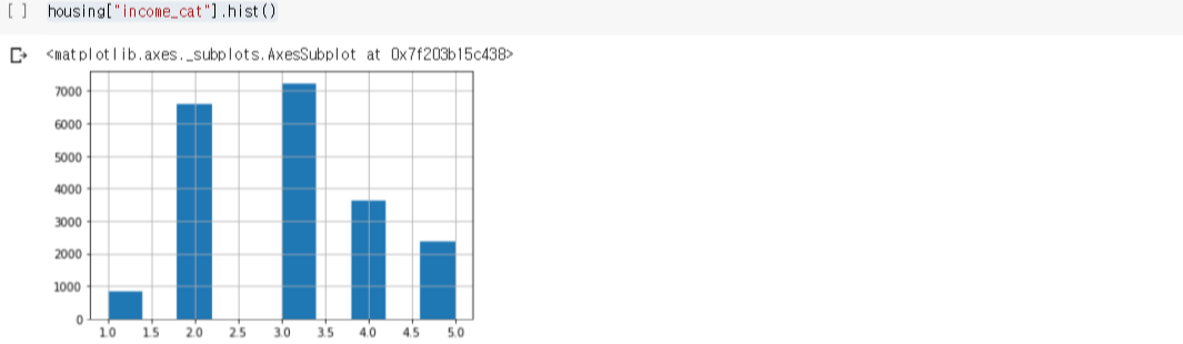 이제 사이킷런의 StratifiedShuffleSplit을 사용하여 비율을 유지하여 샘플링을 하는 계층 샘플링을 하고 비율을 확인해보겠습니다.
