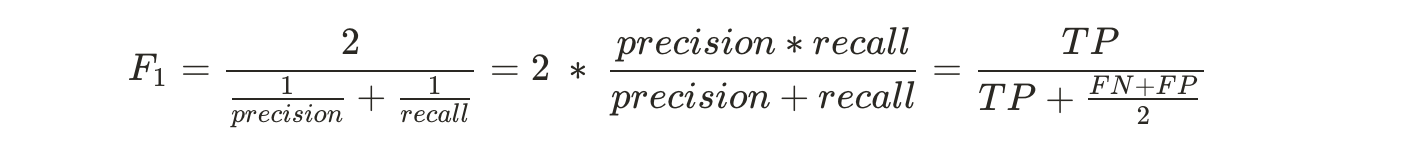 여기에 한 단계 더 나아가 Precision과 Recall을 하나의 숫자로 표현한 지표인 F1 score가 있습니다.