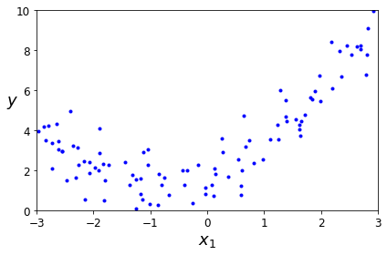 y = 0.5 * X**2 + X + 2 + np.random.randn(m, 1) // randn : 가우시안 표준정규분포 난수를 생성