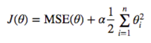 Linear Regression에 Regularization 항이 추가된 것이 Ridge regression입니다. Regularization 항은 훈련하는 동안에만 Cost 함수에 존재하고, 성능을 평가할 때는 포함하지 않습니다. 위 식이 어떻게 Overfit을 억제하는 것일까요?