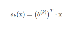 이제 모델의 훈련 방법에 대해 알아보겠습니다. 우리의 목적은 타깃(정답) 클래스에 대해서는 높은 확률을, 나머지는 낮은 확률을 추정하도록 하는것이 목표입니다. 여기에 Cross-Entropy Cost 함수를 사용합니다. 그리고 이를 최적화하기 위한 Gradient Vector는 다음과 같습니다.