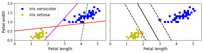 X = iris["data"][:, (2, 3)] # 꽃잎 길이, 꽃잎 너비