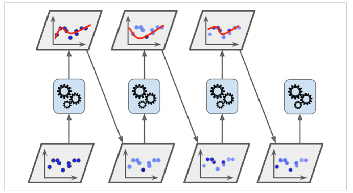 Gradient Boosting도 이전까지의 오차를 보정한 예측기가 순차적으로 앙상블에 추가됩니다. 다만 AdaBoost처럼 데이터의 가중치를 갱신하는 대신 이전 예측기가 만든 잔여 오차(residual error)를 새로운 예측기에 학습시킵니다.