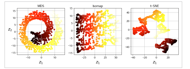 데이터 간 거리를 보존하면서, 차원을 축소합니다.