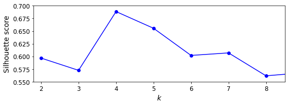 실루엣 점수를 계산하려면 sklearn의 silhouette_score() 함수를 사용합니다.