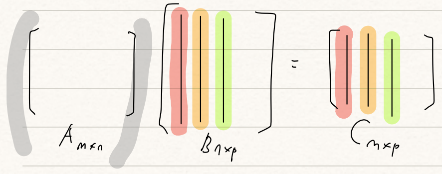 3) $A$의 한 row $\times$ $B$ = $C$의 한 row