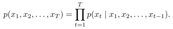 - 예시: 포뮬레이션 1에서 이미지 조각의 나열된 시퀀스에 대한 확률은 각 조각들의 조건부 확률을 모두 곱한 값입니다. 이는 P(x₁, x₂, ..., xₜ) = Π P(xᵢ | x₁...xᵢ₋₁) 로 표현할 수 있습니다. 여기서 xᵢ 는 각 조각이고, t는 전체 조각의 개수입니다. 이 수식에서, xᵢ 는 이미지 조각을 의미하며 x₁...xᵢ₋₁ 는 xᵢ 이전의 모든 이미지 조각을 나타냅니다.