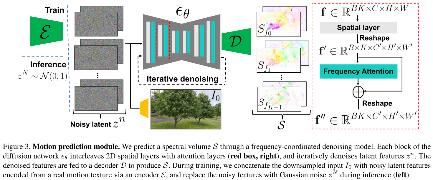 이렇게 함으로써 각 주파수 성분이 독립적으로 예측되는 것이 아니라, 서로 연관된 정보를 공유하면서 더욱 자연스러운 스펙트럴 볼륨을 생성할 수 있습니다. 예를 들어, 나뭇잎의 흔들림을 모델링할 때, 저주파 성분이 전체적인 움직임을 담당하고 고주파 성분이 미세한 떨림을 담당한다면, 이 둘 간의 관계를 명시적으로 학습하여 더욱 현실적인 움직임을 예측할 수 있는 것입니다.