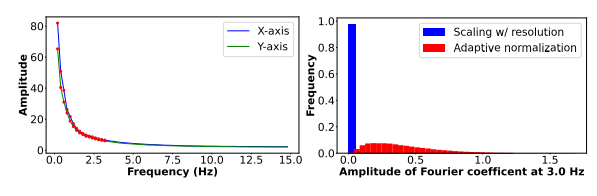 여기서 한 가지 더 중요한 것이 있습니다. 스펙트럴 볼륨은 저주파 성분이 크고 고주파 성분이 작다는 특징을 가지고 있습니다. 만약 주파수 성분에 대한 아무런 처리 없이 그대로 사용하면 모델이 저주파 성분에만 집중하고 고주파 성분을 무시할 수 있습니다. 이러한 문제를 해결하기 위해 frequency adaptive normalization 과정이 필요합니다.